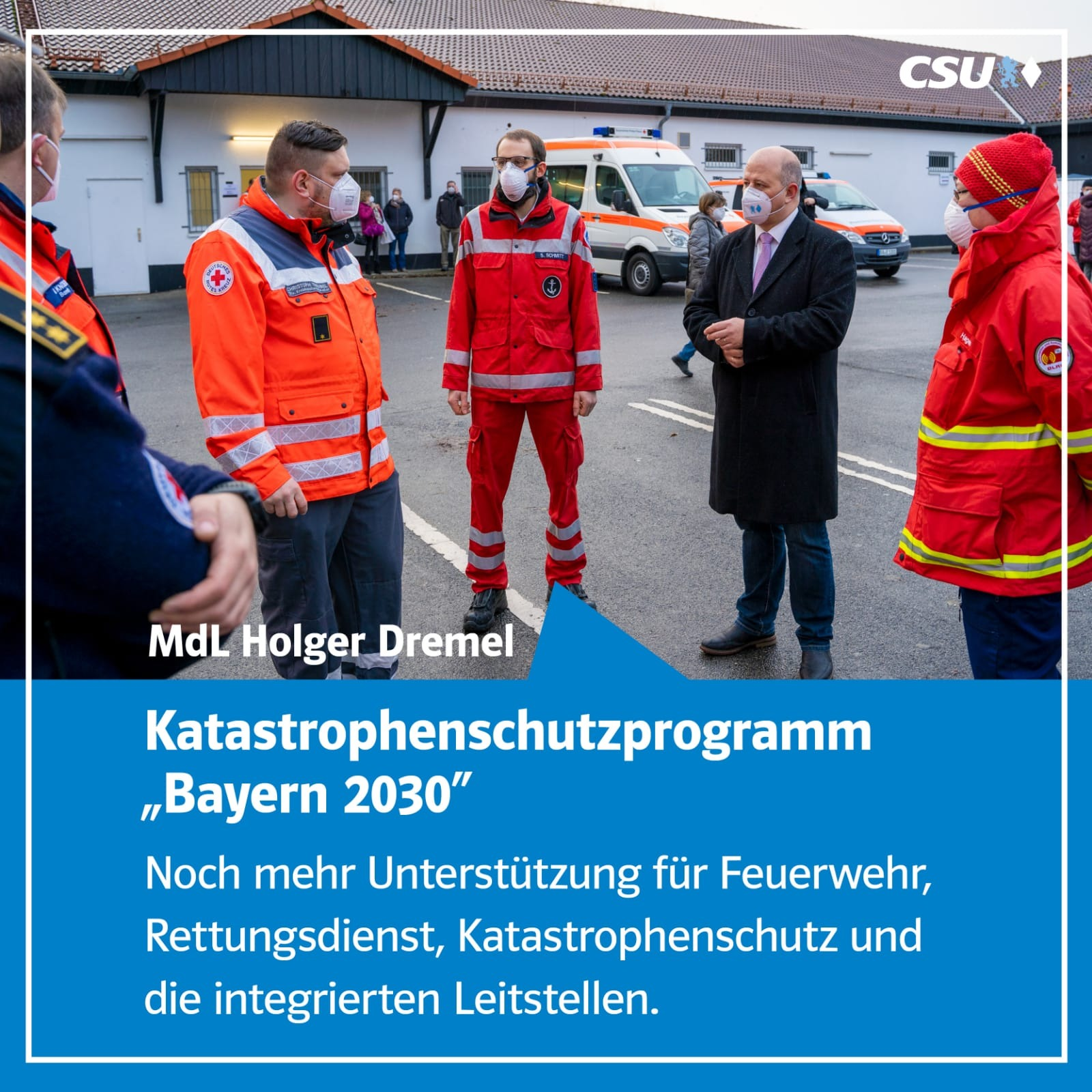 Das neue Katastrophenschutzprogramm "Bayern 2030" kann damit begonnen bzw. weitergeführt werden. Für die Integrierten Leitstellen sind dabei in 2021 Mittel in Höhe von rund 35,1 Millionen Euro veranschlagt. Das Gesamtsystem der Integrierten Leitstellen wird mit diesen Mitteln weiter verbessert.
